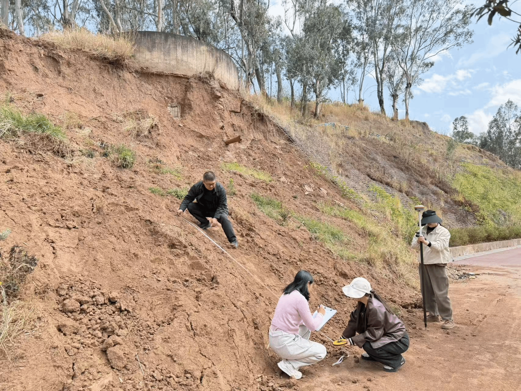 近日,在大姚县北片区路网建设项目竣工决算审计中,审计组聚焦工程质量、安全运行和生态景观管护等关键环节,深入现场核查发现:部分路段人行道边坡防护表层土体塌方,存在安全隐患;绿化工程管护不到位,部分乔木未成活,影响项目整体景观效果。