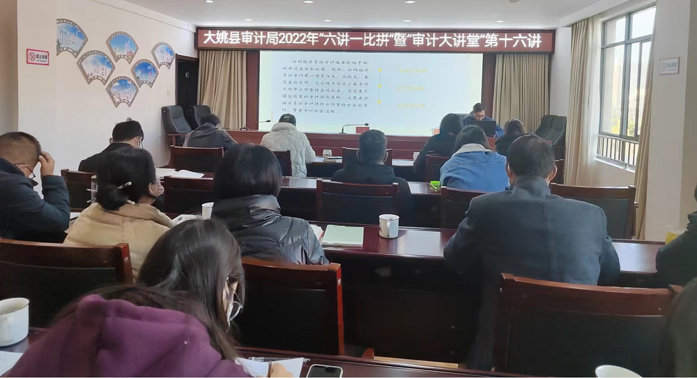 12月12日,大姚县审计局经济责任审计股的同志结合2022年“六讲一比拼”暨“审计大讲堂”第十六讲,对领导干部经济责任审计办法做了进一步解析。主要围绕经济责任审计评价的定义、地位和作用、当前经济责任审计评价中存在的难点、经济责任审计评价的基本原则及方法、内容和经济责任审计评价的责任界定七个方面,对领导干部经济责任审计评价办法的相关知识进行解析,进一步提高了审计人员对审计评价有了新的认识。