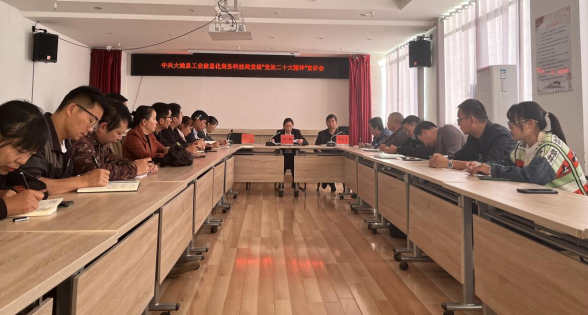 2022年10月29日,县工业信息化商务科技局党组在大姚工业园区党群活动服务中心召开了党的二十大精神宣讲会暨理论学习中心组2022年第八次集中学习会议,局党委书记王琼同志传达了党的二十大精神、中央纪委工作报告主要内容、党章修改主要内容、党的二十大闭幕会主要精神和党的二十届一中全会精神,研究部署了党的二十大学习宣传贯彻工作。