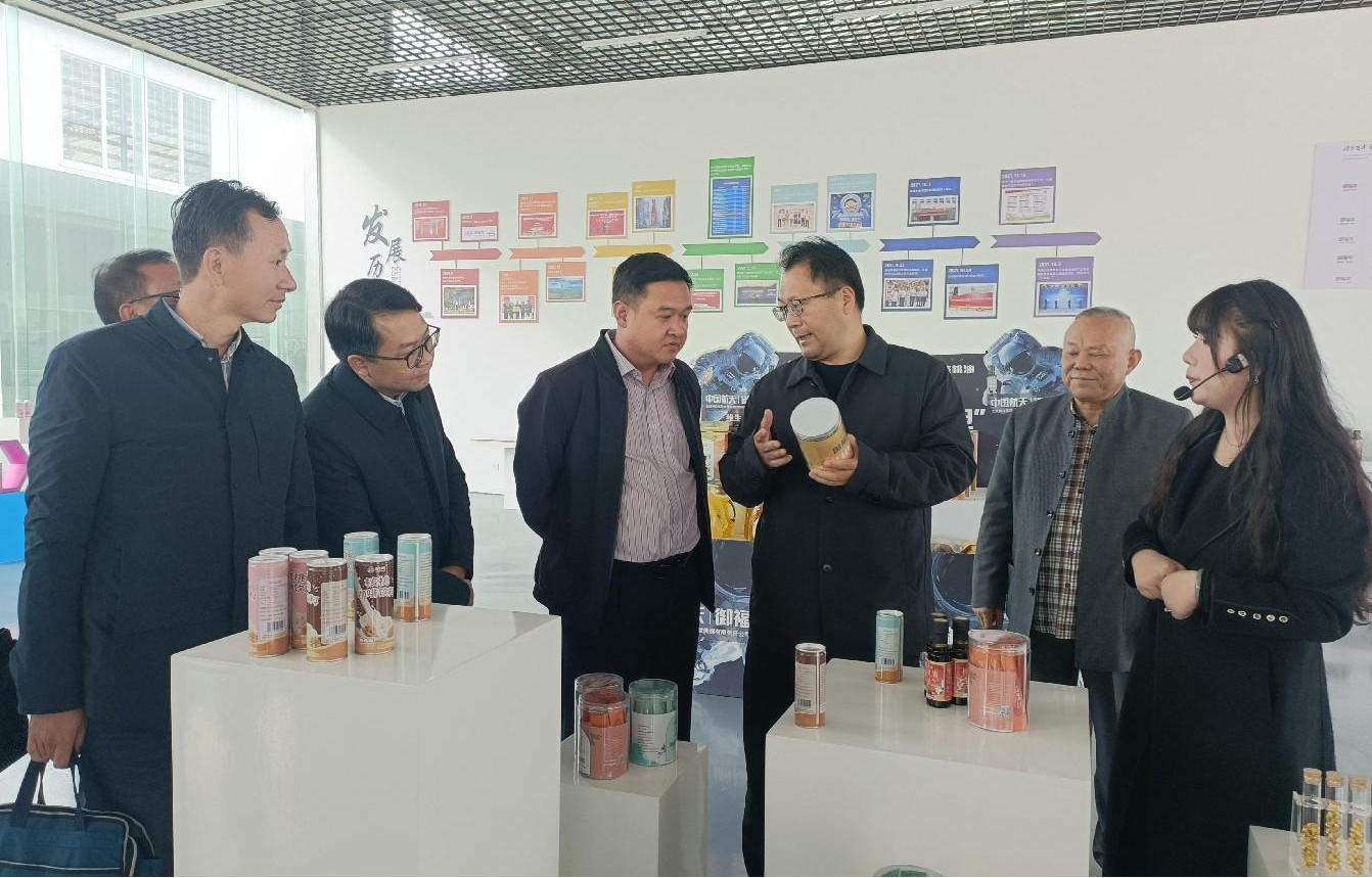 王丽平一行在云南东方红生物科技有限公司董事局主席余楚华陪同下参观了公司“御福年”系列产品展厅、压榨车间、全自动灌装生产线等。随后,双方就核桃产业链延伸、核桃油销售市场、品牌打造等进行了交流座谈,并针对大姚核桃精深加工建设项目交换了意见,对企业提出的顾虑、疑虑,考察团一行一一进行了解答。