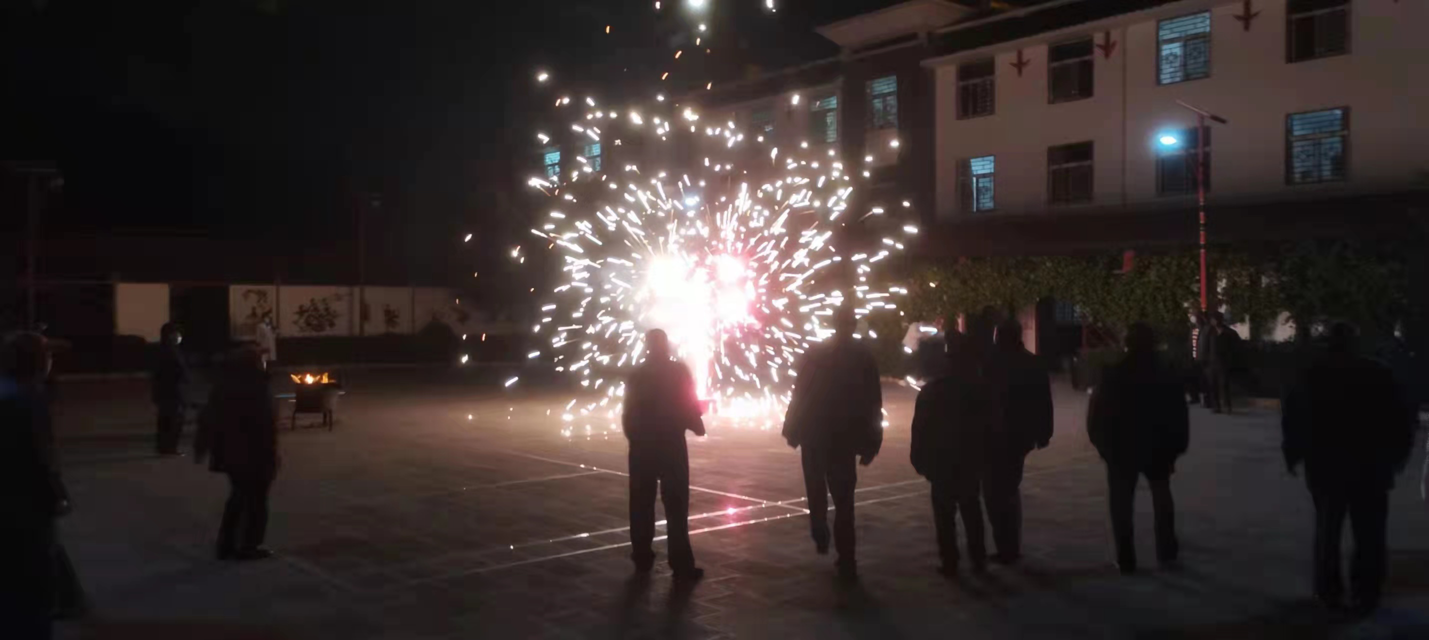 傍晚时分,激情洋溢的音乐在敬老院后院广场响起,工作人员和老人一起手拉手、肩并肩,跳着轻快的“左脚舞”,开始了热闹的篝火晚会,把整个元宵节活动推向了新的高潮。晚上,还燃放了烟花,老人们玩得十分开心。