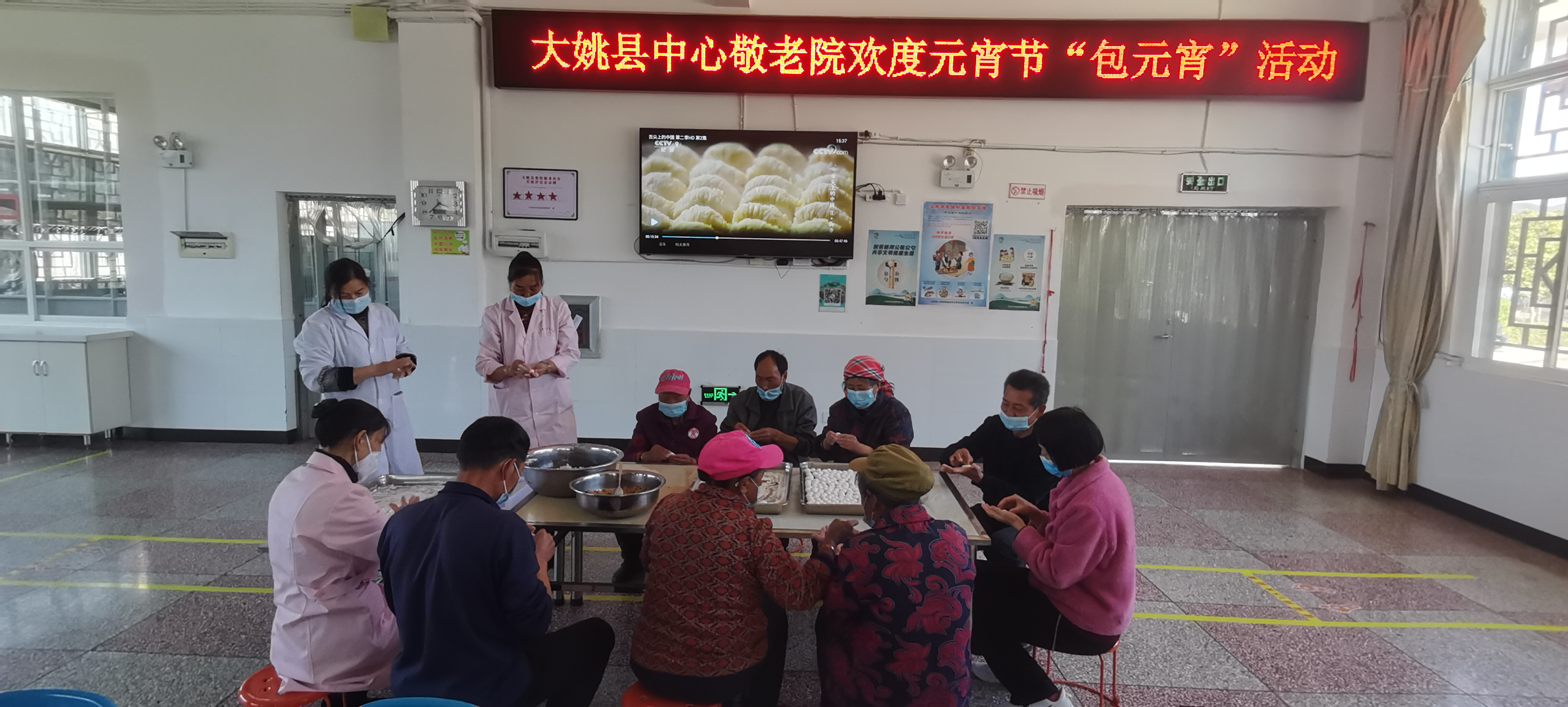 2月4日下午,大姚县中心敬老院的餐厅里欢声笑语,大家一起欢天喜地包元宵的场面热闹非凡。工作人员带着部分老人一起动手包元宵,有和面的,有拌馅的,有搓团的,有包馅的……一会儿的功夫,一盘盘又大又圆的元宵就包好了。