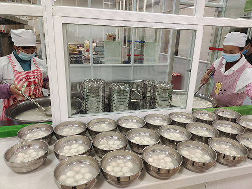 2月5日早上,当工作人员为老人端上一碗碗美味可口的元宵时,老人们吃着元宵,甜在嘴里,乐在心里,每个人脸上露出了幸福的笑容。