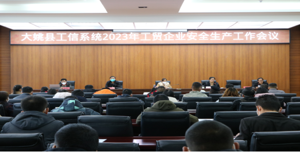 2023年1月11日下午,大姚县工业信息化商务科学技术局在大姚县政务中心碧鸡厅召开2023年工贸企业安全生产工作会议。局机关全体干部职工、全县规模以上工业企业、工业园区企业、加油站、500平方米以上超市商场、限额以上商贸流通企业、民爆物品销售企业、电信运营商、电子商务产业园以及园内企业负责人、安全管理员,共计100余人参加会议。