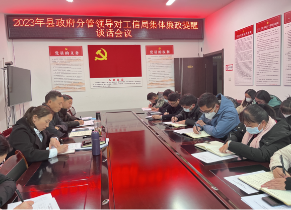 2023年1月28日,县人民政府副县长高培勇同志到县工业信息化商务科技局开展集体廉政谈话,县工业信息化商务科技局全体干部职工参加会议。