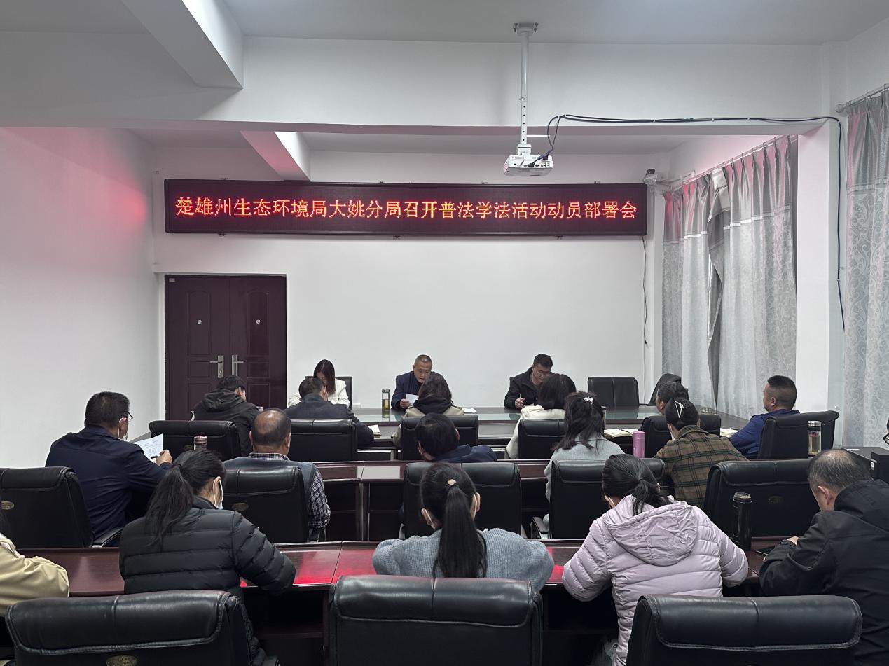 为深入学习贯彻党的二十大精神和习近平法治思想,进一步提高干部职工普法、学法、用法能力,楚雄州生态环境局大姚分局于2月20日召开2023年普法学法活动动员部署会,会议由局党组书记、局长钟学能主持,全体干部职工参加。