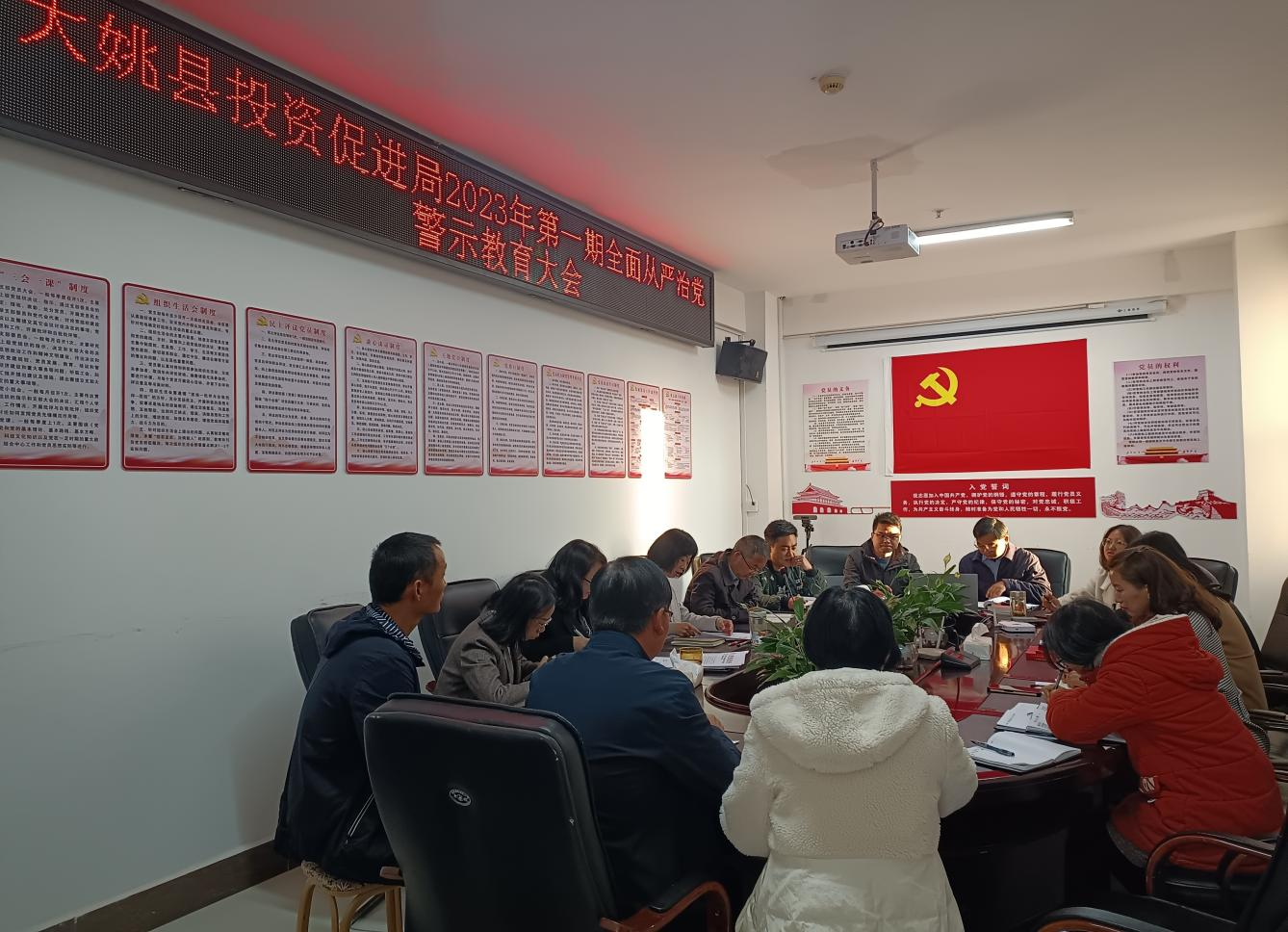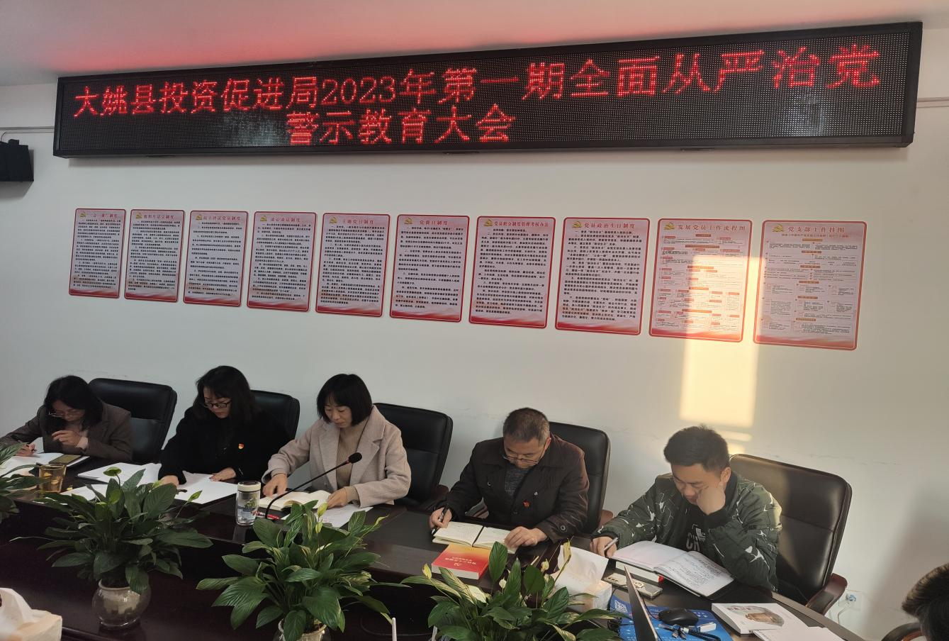 2023年2月20日上午,县投资促进局组织召开2023年第一期全面从严治党警示教育大会。会议深入学习了《大姚县2023年度党风廉政建设和反腐败工作警示教育方案》,传达了大姚县2023年第一期警示教育大会及中共大姚县纪委十五届三次全体会议精神,集中学习了《警钟长鸣—楚雄州典型案例警示教育读本(续八)》,集中观看了《你是谁的人》警示教育片,局党组书记、局长蔡荣婕同志为全体参会人员讲授了专题廉政党课并开展了集体廉政提醒谈话。