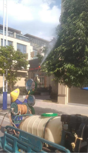 在此,温馨提醒广大市民朋友们,外出时如遇打药作业现场,不必担心,不必惊慌,所打药剂均为低毒药剂,但遇见绿化工人喷药作业时要注意及时避让,快速通过,或戴好口罩、帽子等防护即可。