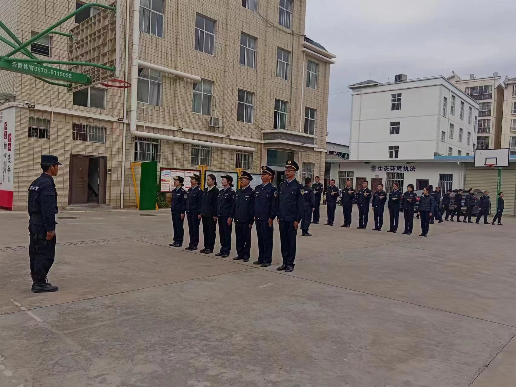 为进一步加强生态环境保护综合执法队伍建设,全面展示队伍的良好形象和干事作风,2023年2月25日,州生态环境局大姚分局在机关举行生态环境保护行政执法制式服装着装仪式,党组书记、局长就规范着装及队列训练要求开展了讲话。仪式结束后在机关院内广场开展了执法队列训练。