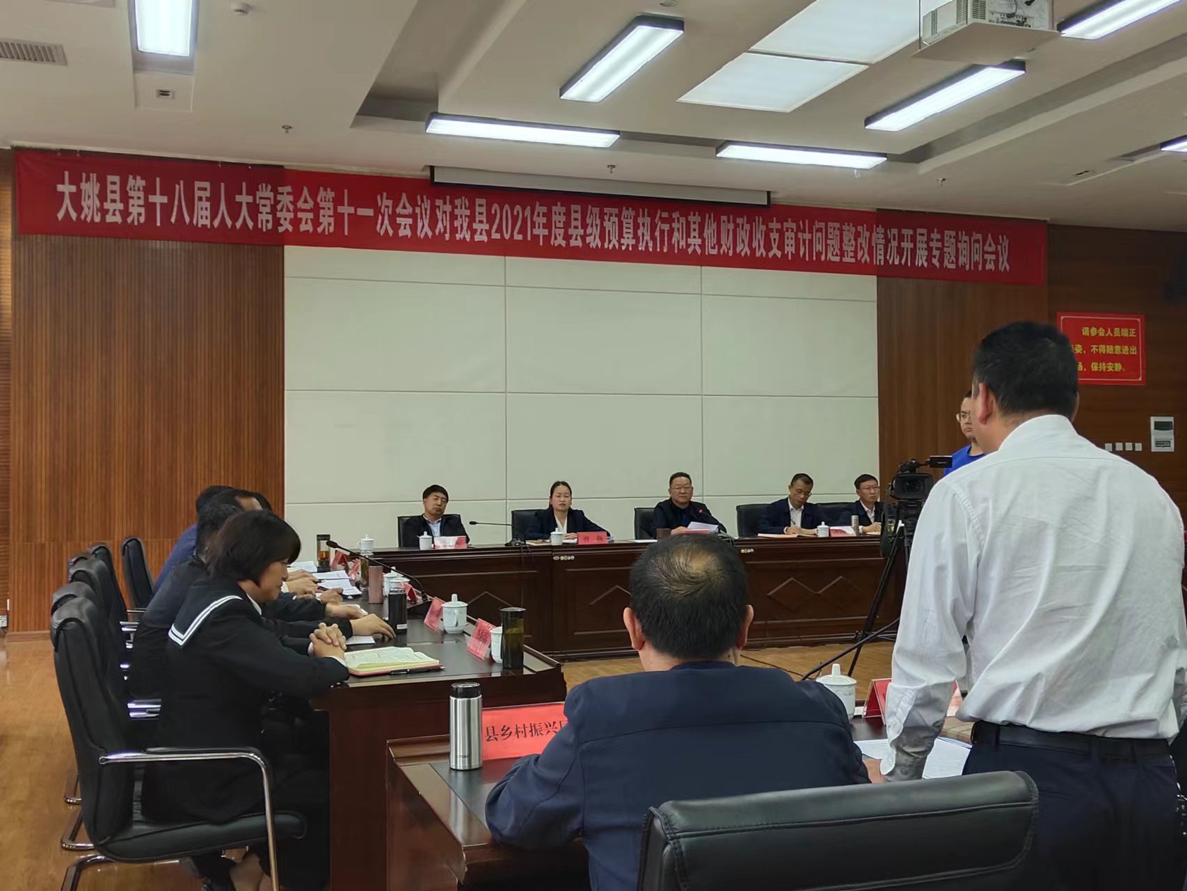 近日,大姚县第十八届人大常委会第十一次会议召开专题询问会议,首次对大姚县2021年度县级预算执行和其他财政收支审计查出问题整改情况开展专题询问。专题询问中,县人大常委会委员现场提出问题精准、直击要害,围绕2021年度审计查出的预算编制和执行、政府债务管理及风险管控、项目建设及资金监管、国有资产管理、产业资金和集体资金投入及监管等还未完成整改的问题,从11个方面进行了专题询问,县财政局、县住建局等7家县级部门主要负责人现场应询回答,县人民政府领导围绕审计整改工作进行了表态。会议还同时对专题询问结果开展了满意度测评,现场公布测评结果。县人大常务委员会还将按相关规定做好满意度测评结果运用的后续工作,确保询问问题全面整改到位。