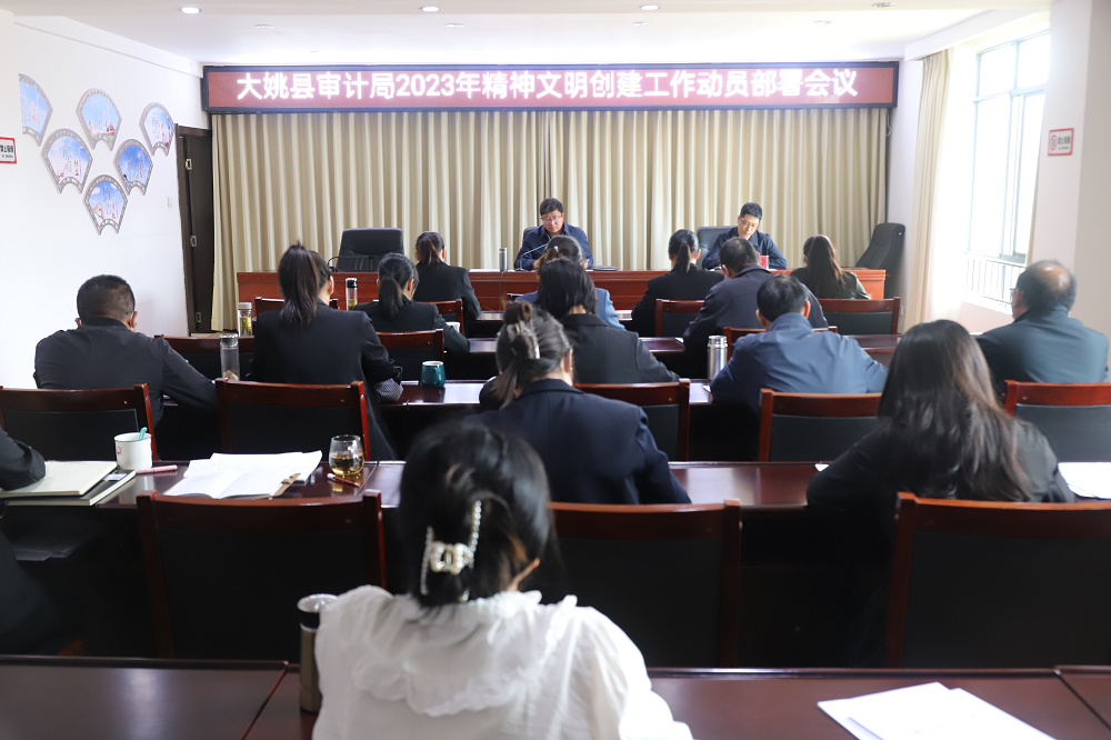 为持续巩固精神文明单位创建成果、安排部署全国文明城市创建工作、统筹谋划下一轮精神文明单位创建工作。2023年3月31日,大姚县审计局召开2023年精神文明创建工作动员部署会议。