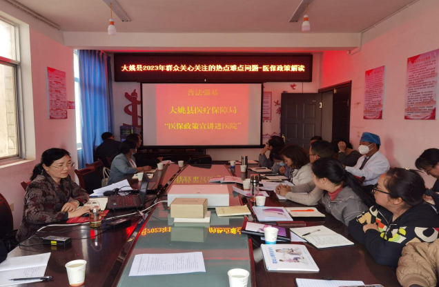 为进一步提升医务人员医保政策知晓率,2023年3月30日,大姚县医疗保障局局长刘跃翠、审核股股长赵晓花到新街镇卫生院开展“医保政策进医院”宣讲活动,40余名镇、村两级医务人员参与了培训。