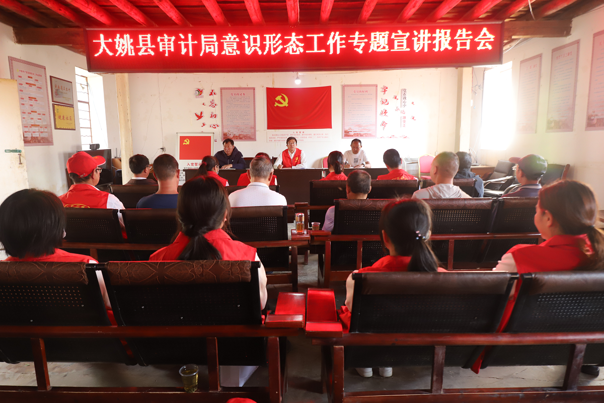 会上,县审计局党组书记、局长杨勇同志对全体审计干部及鼠街村委会大沙地小组党员代表开展意识形态工作专题宣讲,进一步增强党员干部意识形态工作的责任感和使命感。