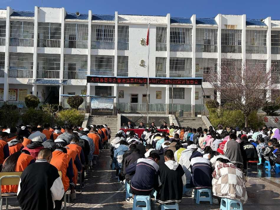 (2023年4月25日,大姚县昙华乡司法所、派出所等部门带领志愿者们走进昙华中学开展送法进校园宣讲活动)