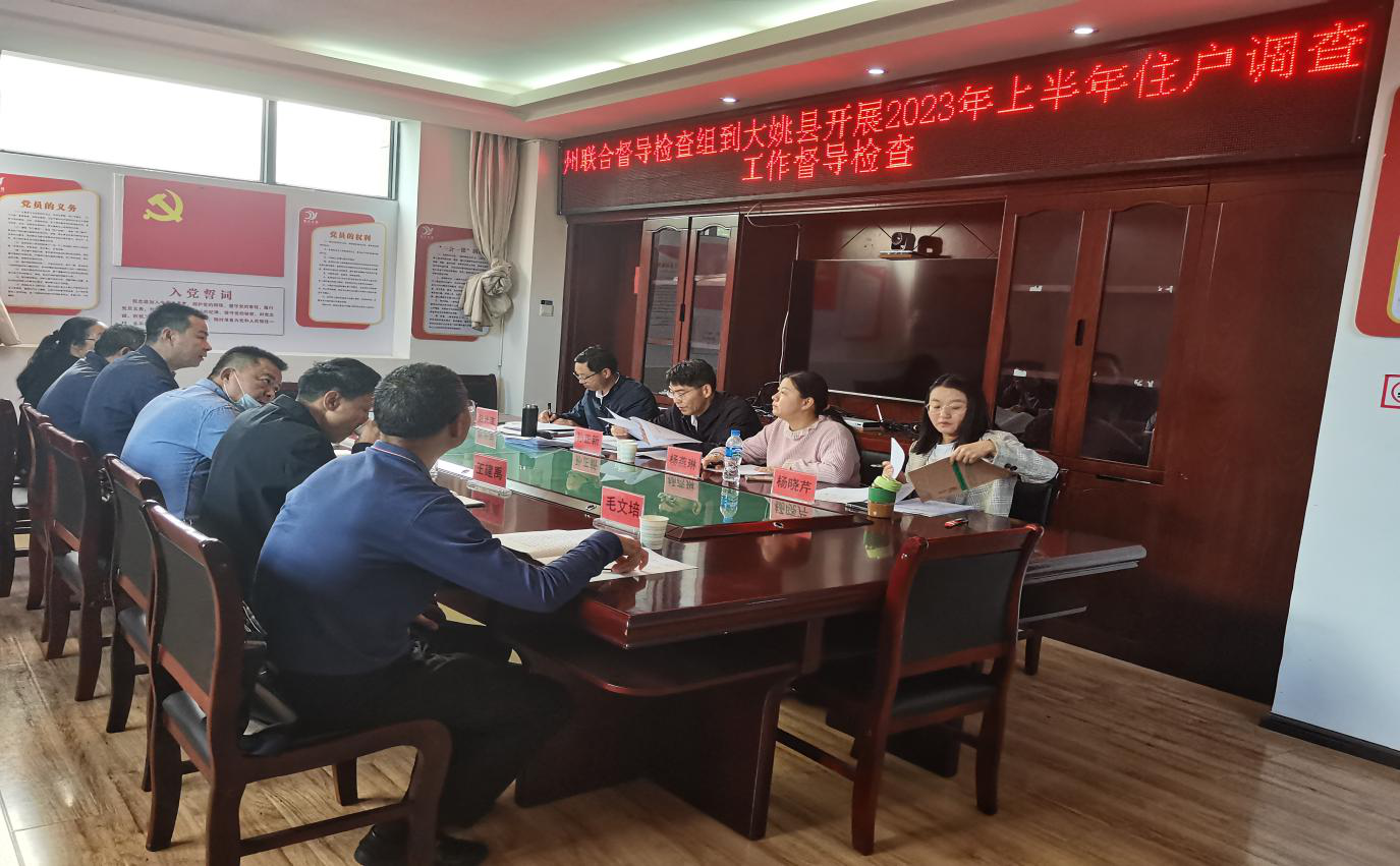 2023年5月16日,国家统计局楚雄楚调查队联合州农业农村局组成督导检查组,由州农业农村局副局长孙正新带领楚雄调查队住户科人员一行4人赴大姚开展住户调查督导检查工作,县人民政府副县长张春培同志、统计局、农业农村局、人社局等相关单位参加督导汇报会议。
