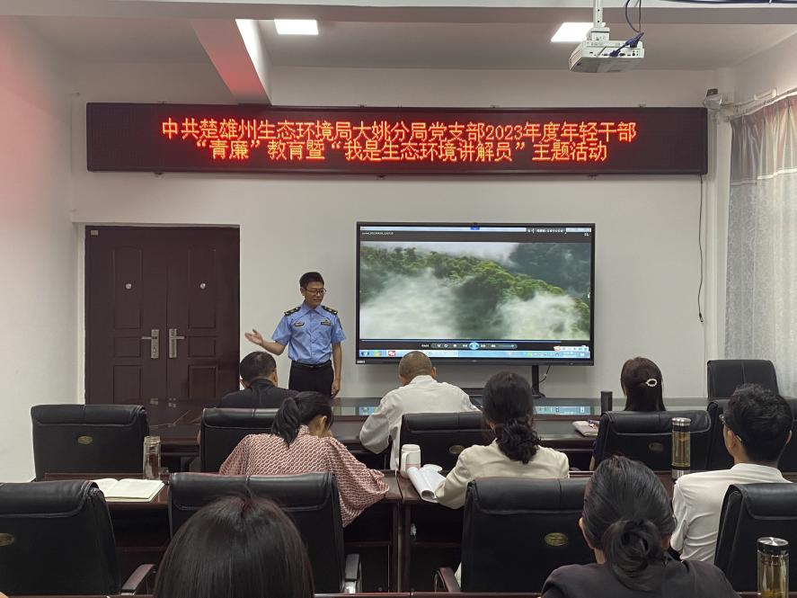 5月22日,州生态环境局大姚分局党支部开展“2023年度年轻干部清廉教育”暨“我是生态环境讲解员”主题活动。