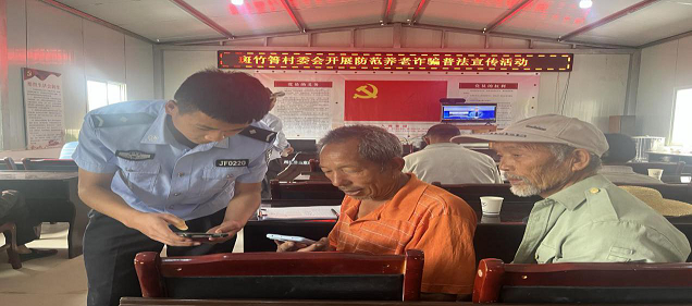 普法工作队员通过播放视频短片、以案释法的方式,用通俗易懂的语言耐心地为老年人讲解养老诈骗、非法集资的常用手段、作案特点、防范方法等内容,提醒老年人“天上不会掉馅饼”,不偏听、不轻信、不转账,多和儿女沟通协商,无法核实时要及时拨打110或96110进行求助。