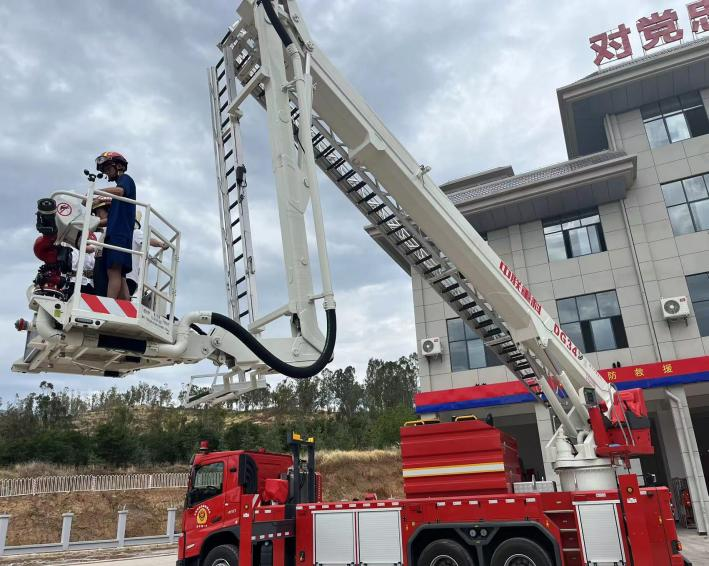 紧接着,消防救援人员还带领观摩人员进行了登高车体验,登高车高达30多米,用于高层救援,登上登高车消防人员为体验人员系好安全绳,戴好消防帽,随着消防云梯缓缓升起,体验人员离地面越来越远,站在登高车的顶端,大姚县的美景尽收眼底,真是一次极有意义的体验。