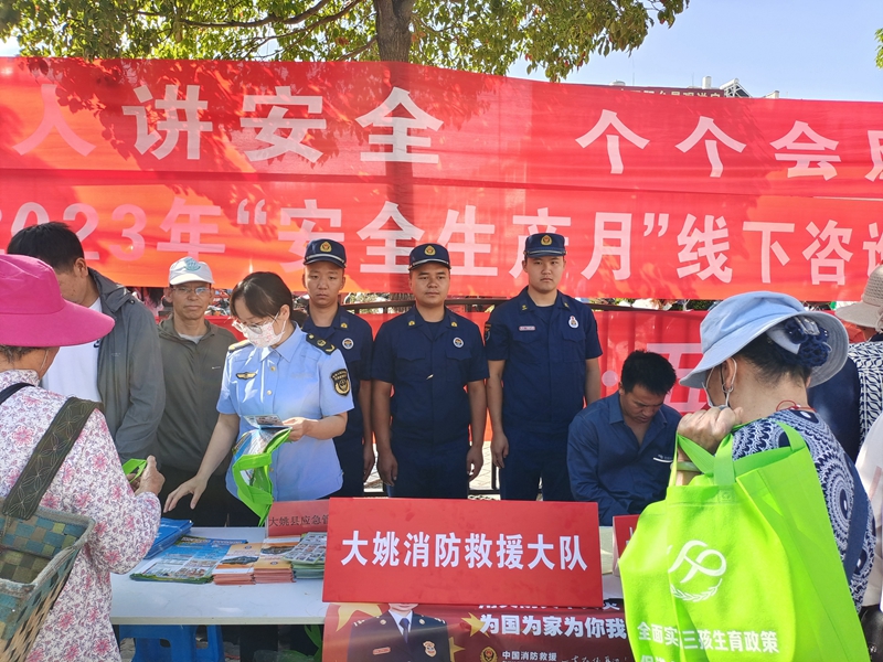 6月4日,大姚县安委会组织全县22家成员单位集中开展“人人讲安全、个个会应急”为主题的安全生产月宣传活动。大姚县消防救援大队以此为契机,强势掀起夏季消防宣传热潮。