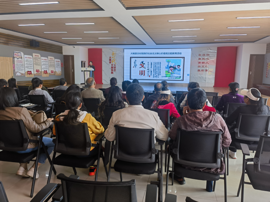 为了贯彻实施以社会主义核心价值观为导向,坚持立德树人的育人宗旨,3月30日,大姚县文化馆结合社会主义核心价值观内容,在文化馆多功能厅,组织辖区部分文艺爱好者、文化志愿者开展社会主义核心价值观教育实践活动。