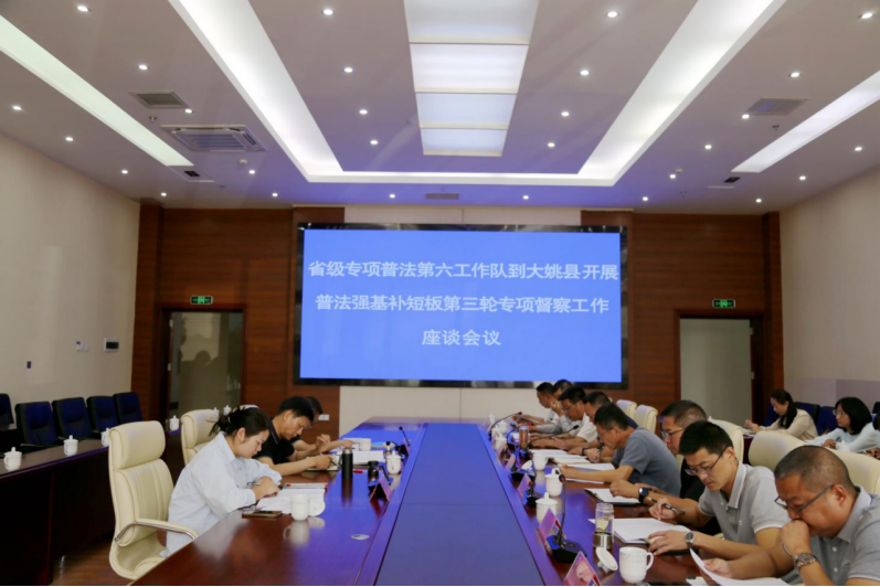 督察组在县政务中心召开座谈会,听取大姚县普法强基补短板专项行动工作情况汇报,并查阅县专项办工作台账资料。督察组还与县信访局主要领导交流,了解我县主要信访矛盾纠纷类型、数量;听取县委宣传部领导对普法强基补短板舆论宣传工作、省州法治产品资源库使用、县级法治宣传资源库建设和推广使用情况介绍。