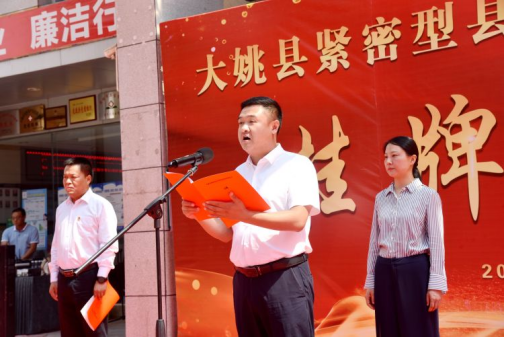 2023年6月26日,大姚县紧密型县域医共体总医院挂牌仪式在大姚县人民医院外科大楼前举行。州卫生健康委副主任李静媛,县人民政府县长杨军、副县长张春培出席仪式,县医改领导小组及医管委成员单位主要负责人、县卫生健康局班子成员、县医共体总医院领导班子成员、县乡各分院执行院长、县人民医院中层以上干部等80余人参加仪式。