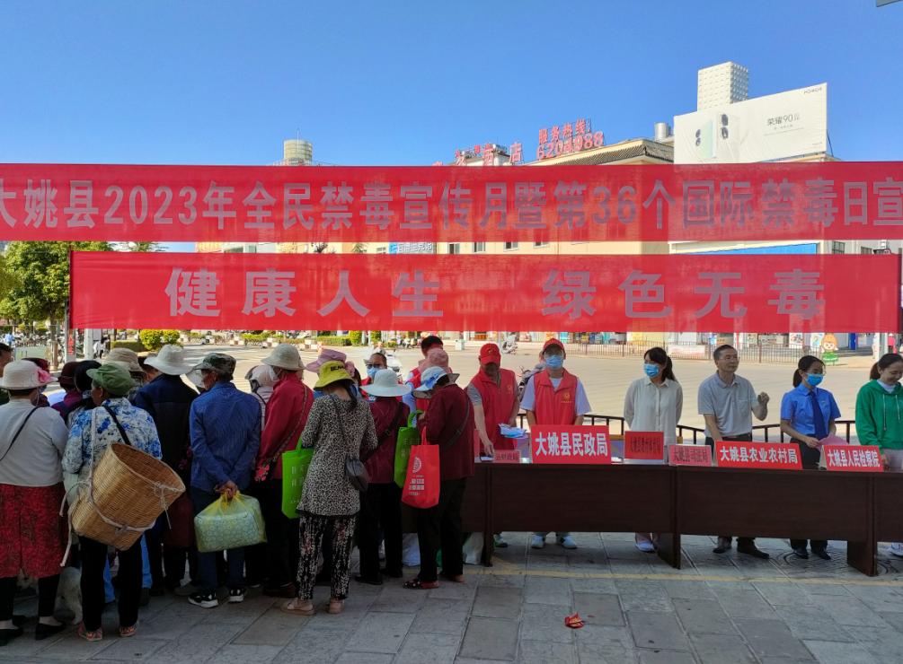 为迎接第36个国际禁毒日的到来,6月25日上午,在大姚县禁毒委员会办公室的组织下,大姚县财政局积极参与2023年全民禁毒宣传月暨第36个国际禁毒日宣传活动。