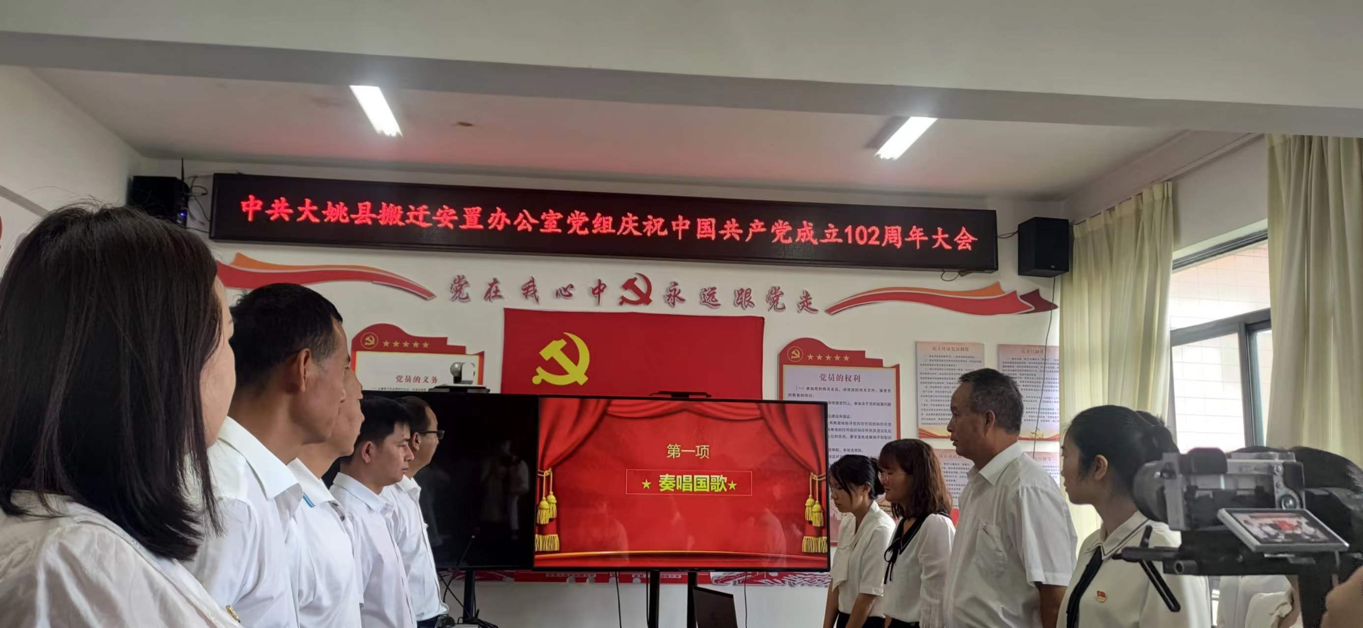 为热烈庆祝中国共产党成立102周年,深入学习贯彻习近平新时代中国特色社会主义思想和党的二十大精神,激励党员干部继承和弘扬党的优良传统和作风,以实干精神谱写移民搬迁安置新篇章,7月5日,中共大姚县搬迁安置办公室党组召开庆祝中国共产党成立102周年大会。