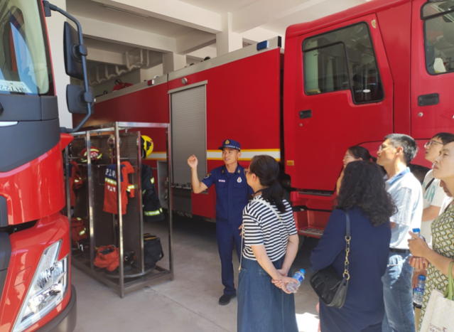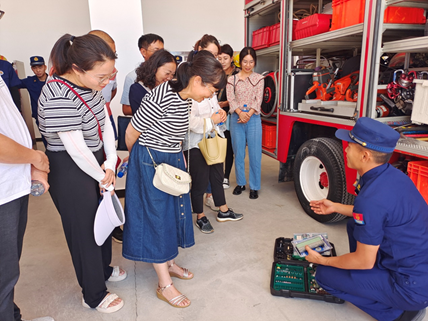 在消防器材装备间,消防 官兵为干部职工详细介绍了火灾的危险性、火灾的预防、初期火灾的扑救及自救等方面的知识,按种类、功能、用途介绍了常规消防器材的使用方法,并就部分消防器材使用现场进行了演示。演示结束后,还进行了消防知识咨询答疑等互动方式,帮助大家切实掌握灭火技能。