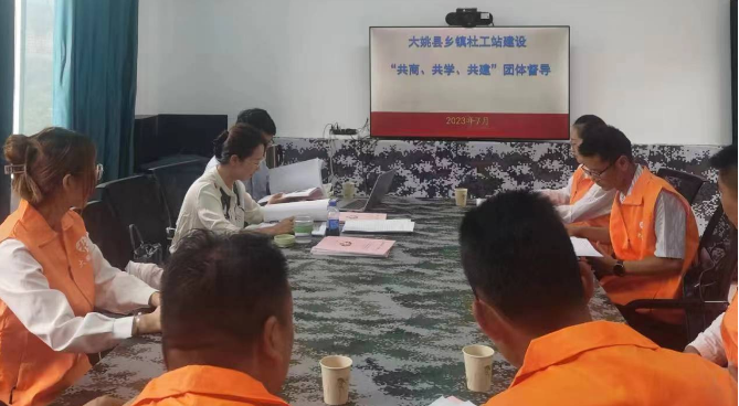 为提高社会工作服务项目运作的规范性、有效性,加快社工人才培养,着力破解社工站规范化建设中存在的困难和问题,7月19日下午,省民政厅第三方机构到大姚县开展乡镇社工站“共商、共学、共建”团体督导。县民政局、各乡镇及县级社工机构相关人员参加了督导。