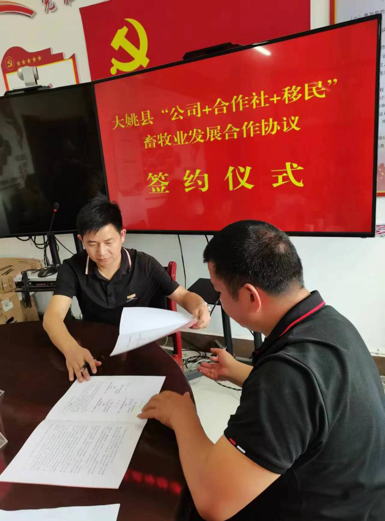 会议通报了大姚县现代移民产业示范园建设情况及对外承租报名竞谈情况,审议表决了《大姚县大中型水库现代移民产业示范园租赁合同》和《大姚县“公司+合作社+移民”畜牧产业发展合作协议》,并现场签订了租赁合同和协议。