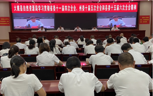 8月6日晚,大姚县自然资源局召开全系统干部职工会议,传达学习贯彻省委十一届四次全会精神、州委十届五次全会精神和县委十五届六次全会精神,研究部署贯彻落实意见。