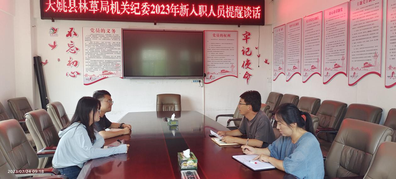 为扛牢压实局党组党风廉政建设主体责任,切实抓好源头预防,做到教育在先、预防在前。近日,县林草局机关纪委对新入职的2名干部开展提醒谈话,帮助新入职干部提高廉政意识、履职意识,筑牢纪律底线,提升新入职干部廉洁从政思想防线,系好人生第一粒纽扣。