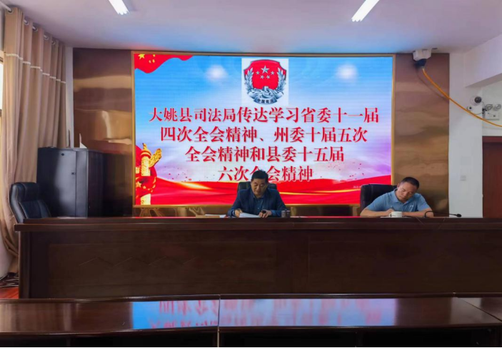 根据《中共大姚县委办公室关于迅速传达学习贯彻省委十一届四次全会精神、州委十届五次全会精神和县委十五届六次全会精神的通知》的相关要求,县司法局于8月7日上午,及时对以上会议精神组织专题学习。局党组书记杨新明同志亲自领学,局机关全体干部职工21人在司法局四楼会议室参会,各司法所干警14人以视频会议形式在分会场参会。