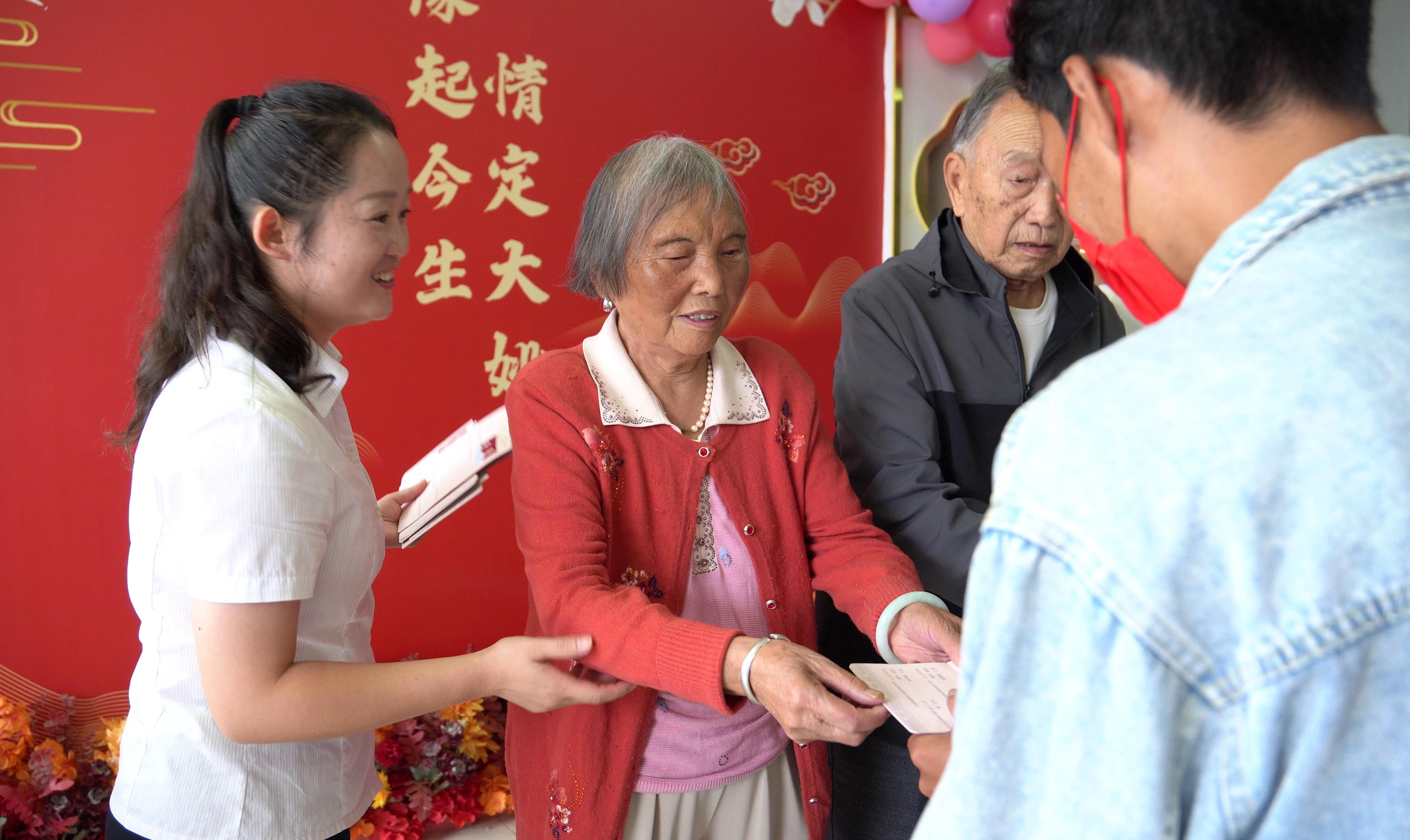 “历经五十余载风风雨雨,情比金坚,两位金婚老人是幸福美好婚姻生活的见证人。邀请金婚夫妇为我们颁证,今天这样的颁证仪式感满满,庄重又温馨。”新人李女士表示:“非常感谢大姚县民政局带给我们充满‘仪式感’的颁证服务!”