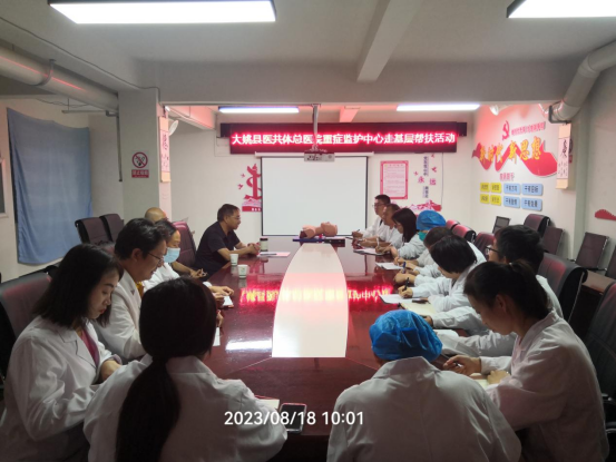 为更好地为广大人民群众提供合适的、有效的急救护理措施,保障病人生命安全,提升医务人员急救处置能力,2023年8月18日上午,在大姚县紧密型医共体总医院的统筹下,县人民医院重症医学科杨红成主任、主治医师金晓祥、李淑梅护士长到大姚县紧密型医共体龙街镇分院开展业务指导帮扶。