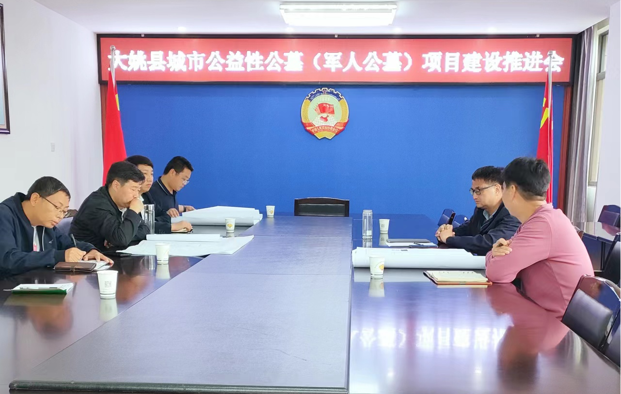 为认真贯彻落实8月29日县委副书记、县人民政府县长杨军一行调研大姚县城市公益性公墓(军人公墓)项目建设工作中提出的要求,进一步优化项目设计方案和施工图纸,加快项目建设进度,8月30日,县政协副主席、县城乡公益性公墓及经营性公墓建设项目专班组组长马忠银组织召开了大姚县城市公益性公墓(军人公墓)建设项目专班工作推进会议。