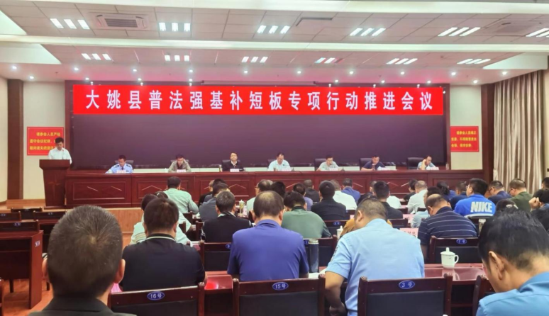 会议要求:普法强基补短板专项行动已进入冲刺期,全县各级各部门要认清当前我县社会治理形势,切实增强工作紧迫感和责任感,以大力推进作风革命效能革命为抓手,锚定目标不放松,紧盯进度不懈怠,铆足干劲抓落实,全力以赴推动专项普法走深走实,为全面建设社会主义现代化大姚营造良好法治环境。全县各级各部门要紧盯工作中出现的关键问题、关键环节,抢抓时间、全力攻坚,补齐短板弱项。一是思想再转变,强化专项普法针对性;二是重点再聚集,提升法治化治理水平;三是责任再落实,确保目标任务圆满完成。