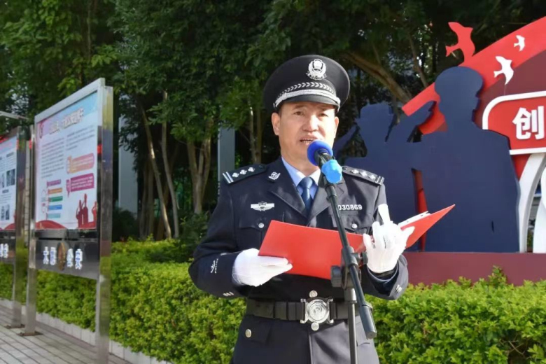 金秋十月,丹桂飘香,中华大地,九州欢歌。在这万里河山披锦绣、举国欢腾颂盛世的特别日子里,10月1日上午,大姚公安隆重举行“迎国庆、升国旗”仪式,以庄严神圣的方式表达全体民警、职工、辅警不忘初心、牢记使命,勇于担当、砥砺奋进的决心和意愿,抒发对伟大祖国的无比崇敬和热爱之情,汇聚“公安心向党、护航新征程”的强大动力。县人民政府副县长、县公安局党委书记、局长汪福出席并讲话,局党委委员及局机关(含看守所、森警、交警)民辅警参加升旗仪式。