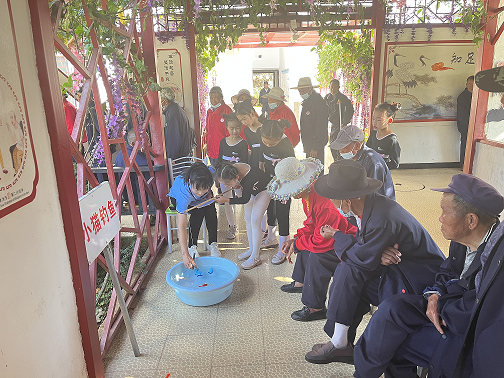 中午,随着小朋友们欢快的舞蹈,活动正式拉开了序幕。敬老院工作人员和小朋友们用舞蹈和歌声传递对老人们的关心和敬意,孩子们稚嫩的动作、甜美的声音以及欢快的舞蹈赢得了老人们的阵阵掌声。随后,老人们和小朋友们在长廊里进行游园活动,围坐着制作向日葵、寿桃等黏土小插画,现场洋溢着浓浓的敬老情,为在院老人们增添了一份温暖的回忆。