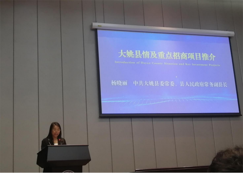 会上,中共大姚县委常委、常务副县长杨晓丽围绕大姚县情历史悠久、资源丰富、民风浓郁、人杰地灵、生态良好5个特点以及绿色食品、绿色能源、康养旅游、装备制造“四大产业”情况进行了详细介绍,并针对大姚最具发展潜力、最具投资前景的5个精品项目进行了重点推介。