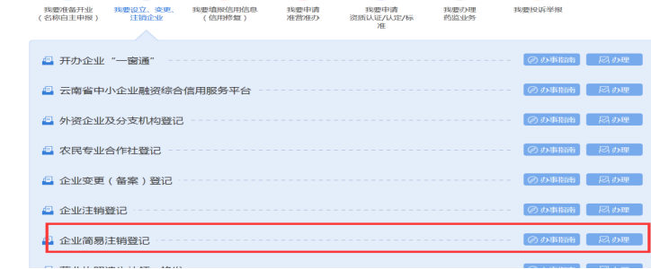 (此图为申请人申请注销在云南市场监管网上办事大厅的申请界面)