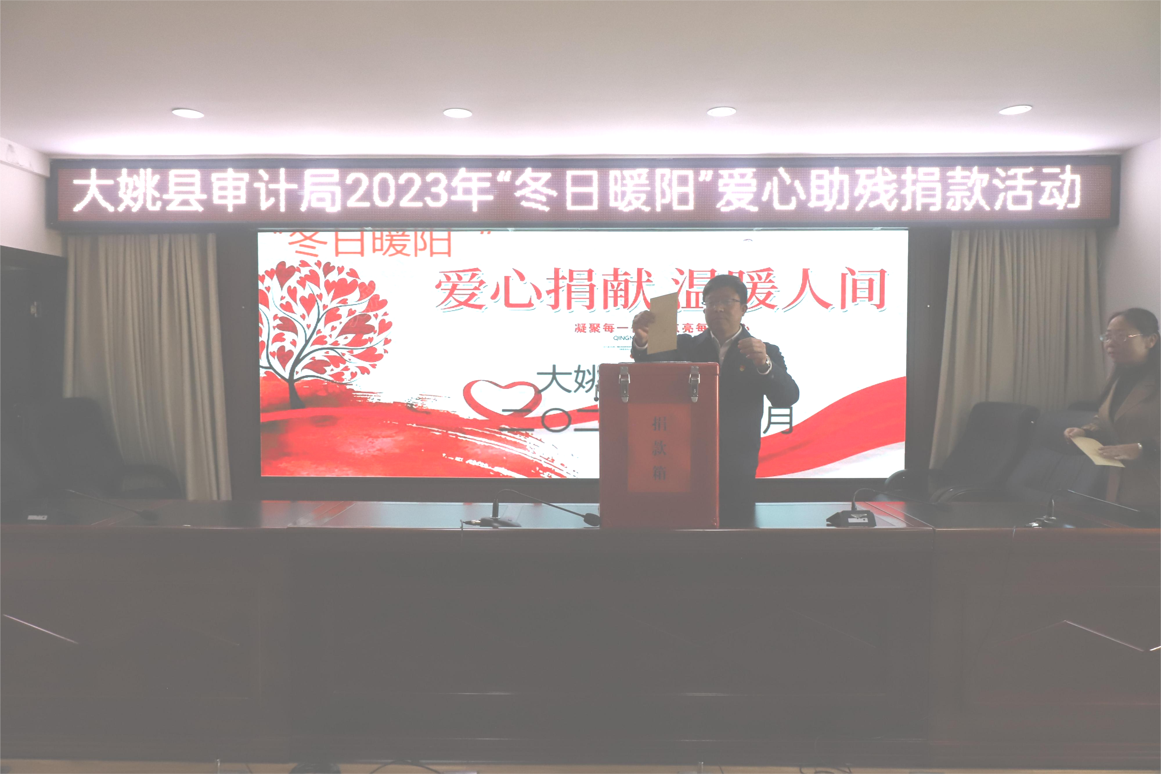 为认真贯彻落实党的二十大精神,坚持为民办实事,着力解决人民群众急难愁盼问题,充分发挥基层党组织的战斗堡垒作用,党员带头发挥先锋模范作用。11月13日上午,大姚县审计局开展“冬日暖阳”爱心助残捐款活动。
