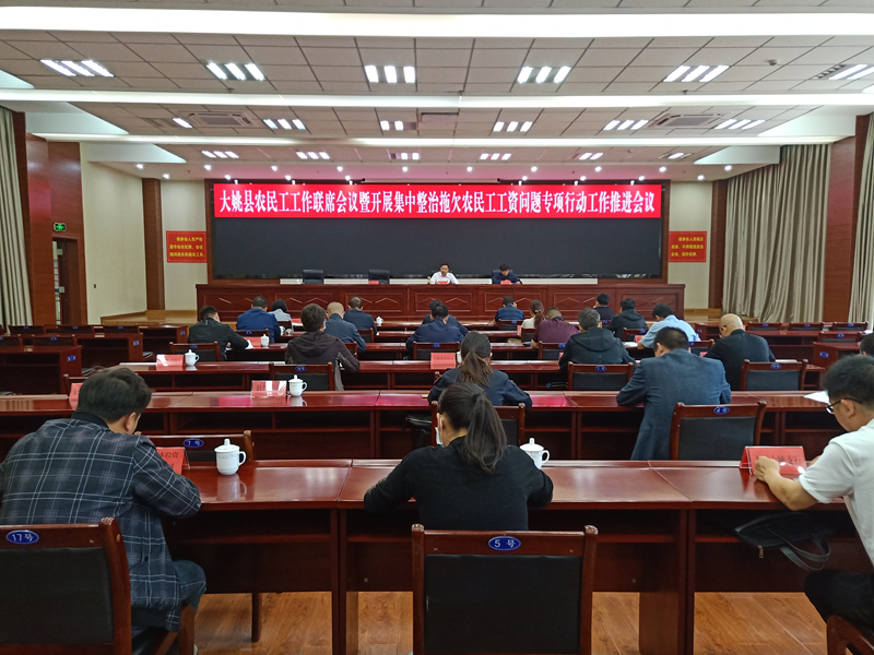 科学部署狠抓落实。把农民工工资支付保障工作列入全县年度“大比拼”考评事项和重点工作事项,及时召开工作推进会议调度欠薪问题整治进度、分析研究存在问题、安排部署相关工作,督促各成员单位做到守土有责、守土负责、守土尽责。印发《大姚县开展拖欠农民工工资问题专项整治“稳薪行动”工作方案》,对开展“稳薪行动”做了精密安排部署,明确工作目标,细化各乡镇和县级各行业主管部门的具体工作任务,提出了相关要求。