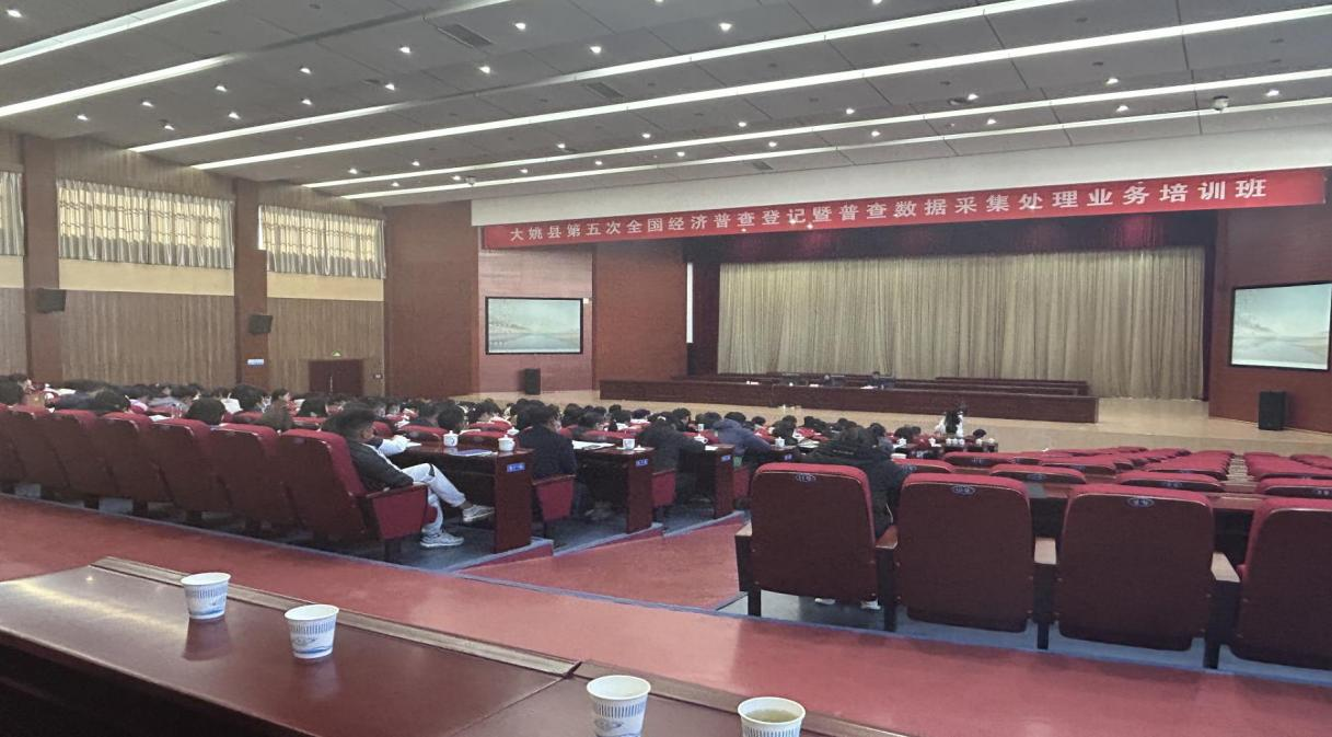 2023年12月18日至19日,大姚县举办第五次全国经济普查登记暨普查数据采集处理业务培训班。本次培训班有各乡镇人民政府分管领导、乡(镇)经普办业务骨干、普查指导员,县经普办工作人员共计210人参加培训。大姚县统计局党组书记、局长、县第五次全国经济普查领导小组副组长席子龙同志主持开班仪式并做讲话。中共大姚县委常委、县人民政府常务副县长、县五经普领导小组常务副组长杨晓丽同志到会作指导讲话。