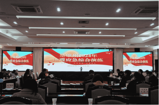 1月15日,州人民政府组织开展楚雄州2024年地震应急综合演练,本次演练以州县同步、视频连线的方式进行。
