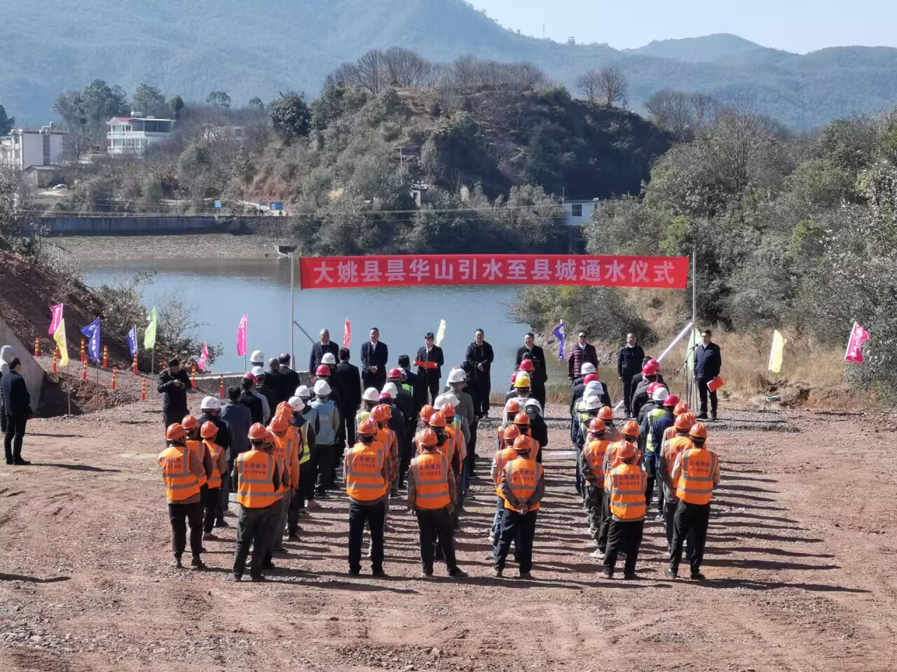 1月20日,在大姚县新街镇碧么水库右岸昙华山引水至县城管道工程6号隧洞出口,随着中共大姚县委书记王丽平一声指令,闸阀开启,奔涌而又清冽甘甜的昙华山泉,通过管道输送,进入县城将军山水厂,为大姚县新街镇及县城区群众送上的一份新春的贺礼。