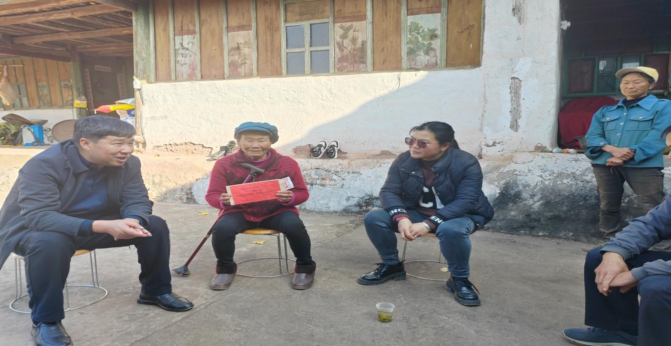 为深入学习贯彻习近平新时代中国特色社会主义思想,全面贯彻落实党的二十大精神,把主题教育成果转化为民生实事,推进主题教育走深走实。近日,县民政局党组书记、局长张如喜、局党组成员、副局长张兰等一行到大姚县湾碧乡新村村委会走访慰问生活困难群众、看望慰问驻村干部,送上新春祝福,传递组织温情。