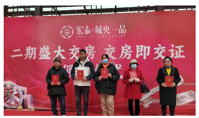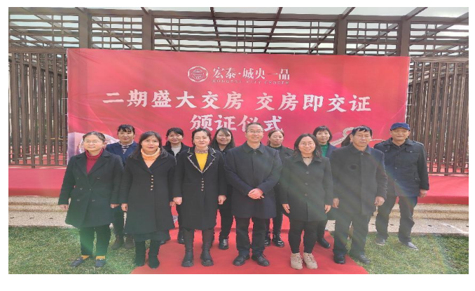 2024年1月27日,大姚县不动产登记中心联合楚雄宏泰房地产开发有限公司在宏泰•城央一品(二期)小区举行交房即交证颁证仪式,为全体购房业主送上了一份美好的新春贺礼,让他们在春节来临之际,接房的同时领取了崭新的不动产权证书,切实增强了购房业主的获得感、幸福感、安全感。