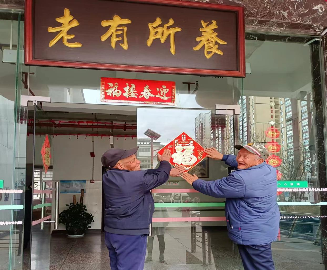 一进入大门就看到处处布置得喜庆热闹,院子里挂起了红灯笼,张起了小彩灯。老人房间都贴上了“福”,红红的福字显得格外喜庆。李爷爷开心笑道:“福字一贴,年味马上就来了,真是福气满满”。一个个红通通的灯笼、一张张温暖的福字,让敬老院的老人们感受到了浓浓的温暖,也感受到浓浓的年味。